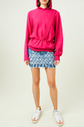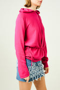 Slim-fit deconstructed hoodie. Hidden tie at the waist line.
