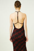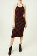 Midi-length Dress. Thin straps-ties. Open back. Stretch Fabric.