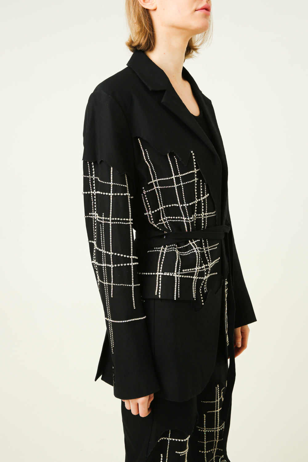 Deconstructed Blazer. Printed inserts. Belt, classic collar.