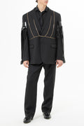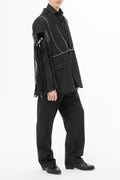 Oversized blazer with leather inserts.