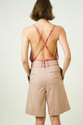 Loose tank top with thin straps and an open back.