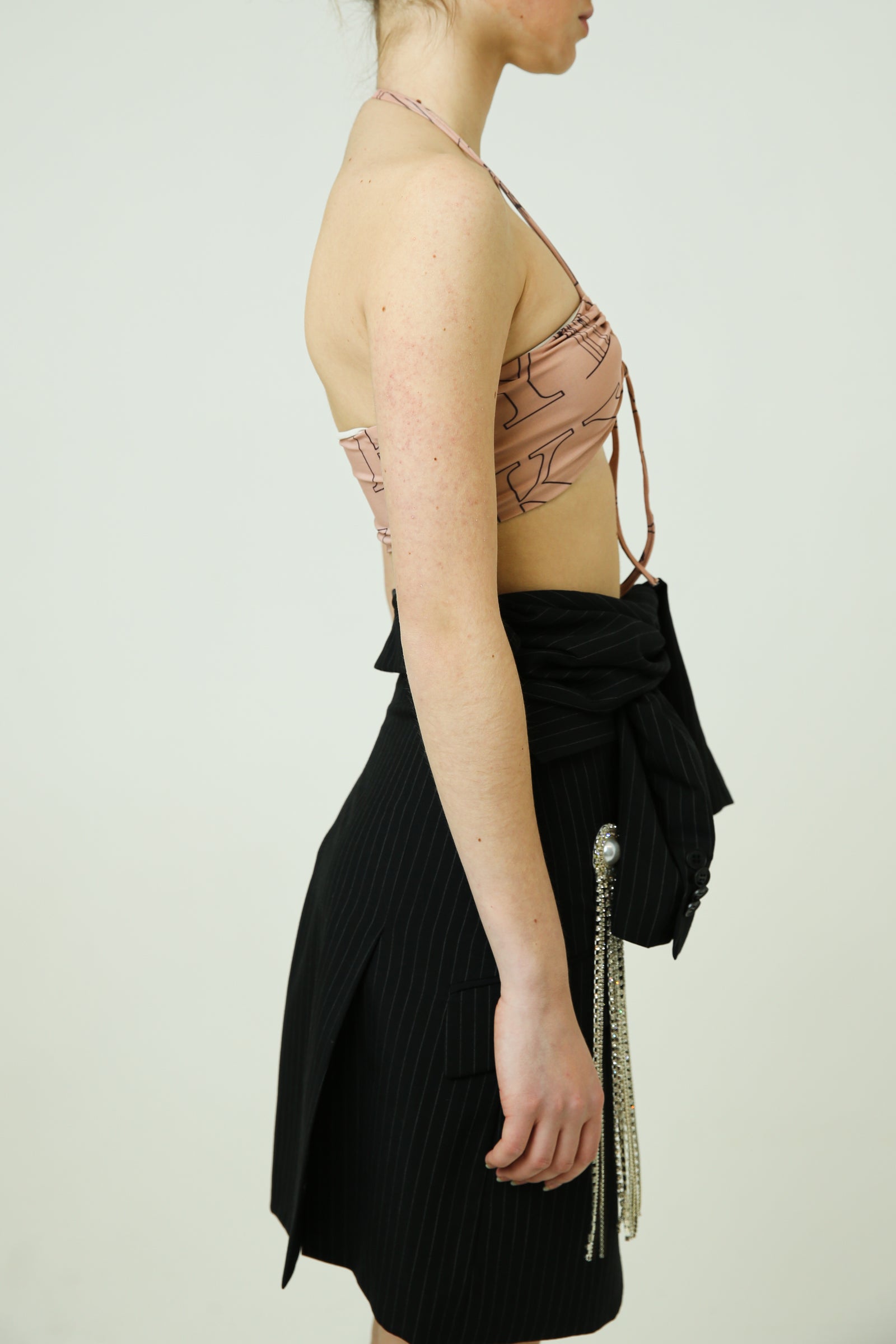 Top bra with thin ties. Printed fabric.